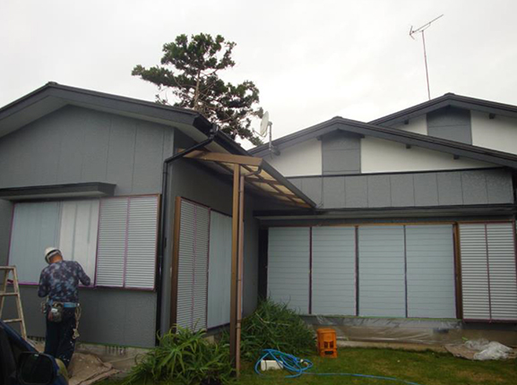 旭市住宅外壁・雨戸塗装軒天修繕工事